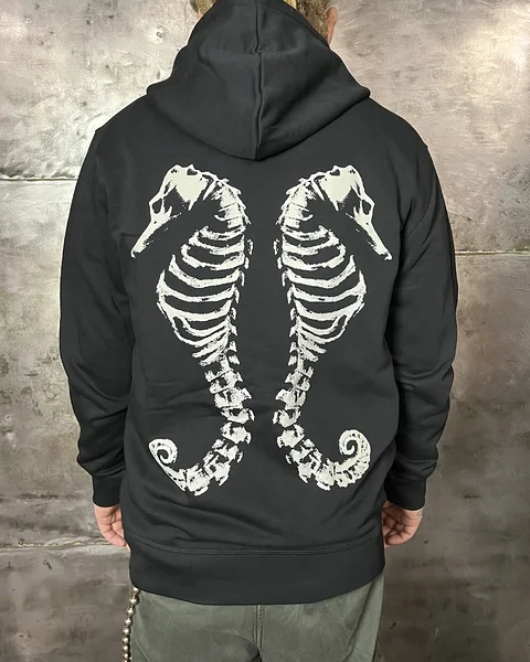 Kirjeldus: Pusa tagaküljel on suurelt trükitud Backbone Tattoo merihobud.